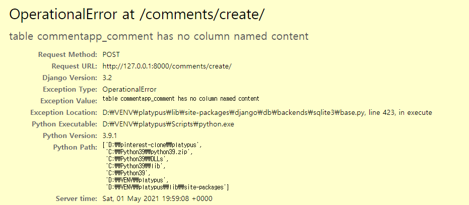 db.sqlite3 를 삭제하고 makemigrations와 migrate를 다시해주었더니 해결되었다.